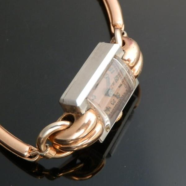1940-50年代純正 10金無垢ローズゴールド & ステンレススティール… 12.6mm(竜頭含めず/含み13.8mm)×28mm(両先端ラグ)