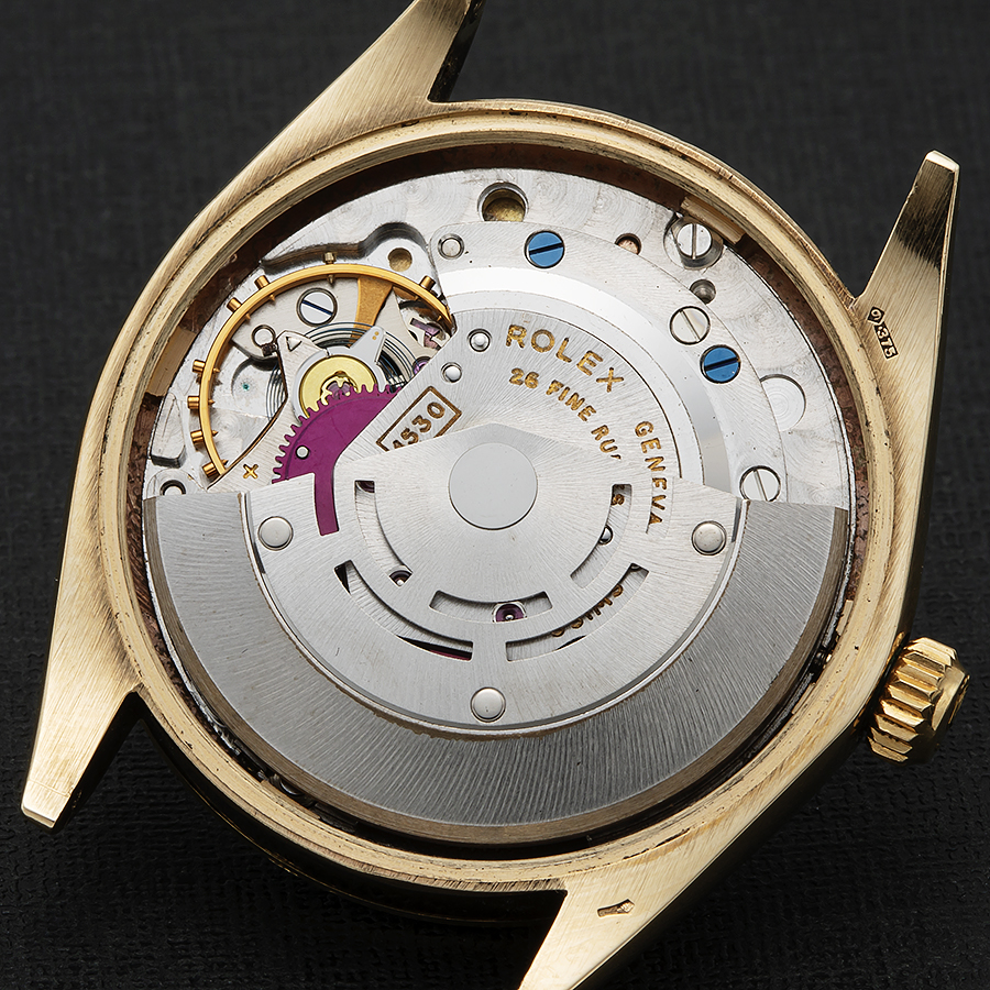| 【商品説明】 1885年バーミンガム 83番 ヴィセストリートにワークショップを構え、ティーカップやスプーンなどの銀細工を中心にイギリス王室などにも献上したイギリスを代表シルバーメーカーであった”ベンジャミン・ブリテン”。 金無垢細工も手掛け、金無垢の懐中時計のチェーンなども制作、金無垢の時計のケースやブレスレットにまでクオリティーの高い商品を世に残していった。1934年から世界的にいち早く始まった関税対策も含めてロレックスも含め、数多くのメーカーがイギリスに輸出する際に自社商品をイギリスで制作したり様々な方法で回避するのにロレックスも当時、それが理由かどうかはさだかではないが、”ベンジャミン・ブリテン”に時計のケースやチェーンなど依頼をした歴史がある。 ベンジャミン・ブリテン。インポートの場合のメーカーズのロゴは”四角い枠の中にB&S、買う者全てにそのロゴはステイタスを与えた。 今回のブレスは9金無垢のオイスターチェーンブレス。特別という存在は特別という存在にだけ素直に存在価値を見出すように、このブレスの存在だけでも価値があるにも関わらず、このブレスはあるモデルを引きだたせる為に存在した。 “ROLEX OYSTER PERPETUAL AIRKING 9 KSOLID GOLD” ご存知、誰でも知るところのエアキングである。現在まで続くオイスターパーペチュアルモデルの中で誰でも知る身近なステンレスモデルとしての存在だが、1960年代だけイギリス市場向け特別なオーダー品としてイギリスに輸入されたエアキングが存在する。 それが金無垢エアキングでRef.5500である。当然ご存知の通り、一般向けとして販売されたエアキングに現在も含め、発売されたことはない。5500自体も5506のカップゴールド 以外、コンビ、ステンレスのみである。 当然、特別なオーダー品としてのプロセスは金無垢ということだけでなく、そこにうは特別にインポートされた証としての存在がある。フランス市場向けとした裏蓋のロレックスのロゴ刻印が有名なようにその証として裏蓋の内側にはイギリスの何処の港にインポートされたかを示す”インポートマーク”、何年にインポートされたかを示す”ヒストリックマーク”、そしてスイスの金無垢のホールマーク以外にイギリスの金無垢のホールマークも刻される。それはラグの裏側にも刻印がある。そしてコメックスやミリタリーにも必要不可欠となる特別なオーダー品の証である同じく内側のセンター部分に存在するラグ位置と同じシリアルナンバーが刻印される。 全て特別という存在が明かす最高のストーリーをこの一品は備えている。 ROLEX OYSTER PERPETUAL Ref.5500 9K SOLID GOLD ロレックス オイスターパーペチュアル エアキング Ref.5500 9金無垢 1961年イギリス.ロンドンにてインポート。1960年製造. ★★★ R O L E X ★★★ 9K Solid Champagne Gold “Air King” London Assay Office import mark in 1974 9金無垢シャンパンゴールド “エアキング” 1974年ロンドン検定インポートマーク Ref.5500 W/ 9K SOLID GOLD B&S Chean Bracelt ☆☆☆ 1960年頃製造ビンテージ コンディション ☆☆☆ 現在(歩度:+15秒/振角:255前後/片振角:1.0) ※温度、湿気など環境に変化致しますのでこの数値でのお約束ではございません) 動作保証:基本的に歩度のみの±60秒前後以内とした保証となります(動作保証3ヵ月) ☆☆☆ “1966年頃製造”ファクトリーオールオリジナル ☆☆☆ ダイアル裏の爪足の偽造痕のチェック、リダン痕のチェツク済み (バンド以外は完全オリジナル)※ダイアルも完全オリジナルです。 【ダイアル】1960年頃製造純正シルバーグロス ダイアル 【刻印】(ROLEX OYSTER PERPETUAL Air-King SUPER PRECISION SWISS MADE) 【状態】年代を全く感じさせない最高の状態である 【針 & アワーズインデックス】1960年頃製造純正バー アワーマーカーズ W/トリチウムドット夜光 & アルファー夜光針 【状態】ドット夜光、針の夜光もややヤケ程度で最高のコンディション 【ベゼル】1960年頃製造純正 9金無垢スムースベゼル 【状態】小キズ程度で目立つ打痕などのキズはございません。※磨きはしてございません 【リューズ】1960年頃製造純正18金無垢張りツインロックリュウズ 【状態】チューブの閉まりも含め完璧と言っても過言ではない最高の一品です ![]() 【ミドルケース】1960年頃製造純正 9金無垢シャンパンゴールド ミドルケース 【刻印】●12時位置:(5500)●6時位置:(——–) 【サイズ】34mm(リューズガード含めず/含み36mm)×42mm(両側ラグの先端まで) 【状態】小キズ程度で目立つ打痕などのキズはございません。ヤセはややございますが、かなり状態は最高です 【スクリューバックケース】1960年頃製造純正 9金無垢 スクリューバックケース 【刻印】ケース裏:(MONTRES ROLEX SA GENEVA SWIZERLAND PATENTED 9K 375 1002 ) 【状態】オープナーのキズも無く、打痕、凹みも一切なくかなり良い状態であると感じています。 【クリスタル】1990年以降、ロレックス純正アクリル風防 【状態】極小のキズはございます。磨きで多少落としています。 【