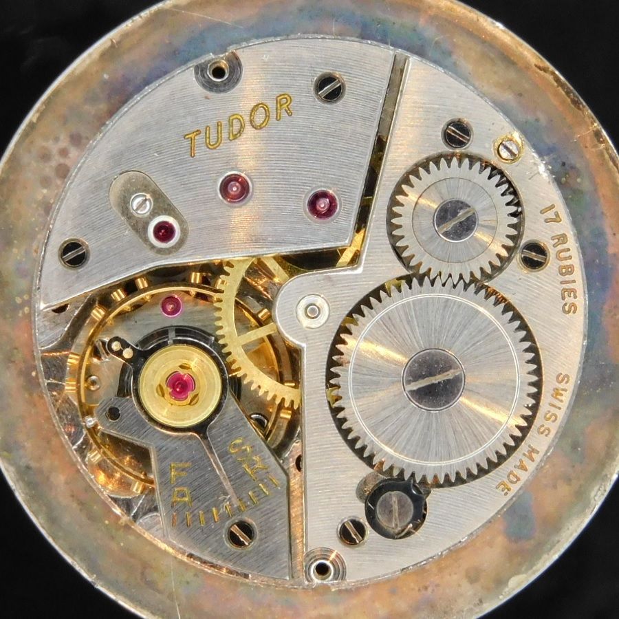 | 【商品説明】 1926年、”Veuve de Philippe Huther/ヴーヴ ドゥ フィリップ ヒュンター”として存在していた時計メーカーをロレックスが、1936年に引き継ぐ形となり、1946年3月に”MONTRES TUDOR SA”に社名を変え、今日に至っているが、何と言ってもその年代により変わっていったチュードル社のエンブレムがオールドチュードルの魅力であろう。 1936年頃までのストレートな”TUTOR”の名を入れ、そこにスモセコの上部にROLEX WATCH CO LTDのダブルネームを基本としたデザインから始まり、その後の盾薔薇紋章と言われるように盾の中に薔薇を描いたデザインヘと変わり、”MONTRES TUDOR SA”と変わった’46年頃にはそのデザインの数だけでも8種類とも言われる小薔薇紋が誕生し、そこに大薔薇紋章も発生し、1969年すべてが統一され現在の盾マークとなった。当然、現代においてはリダンがほとんど完全なオリジナルコンディションとして存在する個体も少なくなってきていることからもすべてのエンブレムが希少として存在するのは事実だが、その各薔薇紋の真実のヒストリック性については未だ解明されていないのが真実である そんなチュードルから今回ご紹介するのは、その見た目の通り、チュードルとしては非常に希少で珍しいモデルであり、独特的な大きな角という意味を成す”ビッグホーン”ラグと呼ばれたリファレンスナンバー”Ref.901”である。 現在では一切世界市場では出会えない。希少過ぎる一品で、当時はステンとコンビと販売され、ラグジュアリー的ではあるが、その34㎜あるケースからしてもその角のようなラグが存在することで、かなり存在感は丸出しである。しんし文字盤の小薔薇の繊細なデザインが、チュードルとしての気品は漂うばかりか、この一品を見るだけで感じてはしまうほどのオーラも感じる。 スペックとしては、その文字盤の名の通り”SHOCK RESISTING”耐衝撃モデル。この意味たるものはこの一品に搭載されているブゾーの7000系キャリの耐震機能がキフアブソーバーであるが、耐震をゴールドのシャトン留めにすることで、安定性をより高く、それをペットネームとして文字盤に配することで、この一品のスペックの特徴を象徴としたと言えよう。 ケースともども目立つ、打痕、キズもなく、迫力あるラグにも目立つキズ、打痕も全く無い。文字盤は経年のヤケが広がり最高のビンテージ感を醸し出している。 Small Rose Emblem “SHOCK ERSISTING” Big Horn Lug 34mm Over Case 小薔薇 “耐衝撃モデル” ビッグホーンラグ 34mm ケース R e f . 9 0 1 ☆☆☆ 1955年頃製造ビンテージモデル ☆☆☆ (メンズ/平置日差;+60秒/振り角;255°/片振:1.5ms/拘束角:55) ☆☆☆ オリジナルコンディション ☆☆☆ ダイアル裏の爪足の偽造痕のチェック、リダン痕のチェツク済み※ダイアルは当時のままのオリジナルコンディション ☆ 1955年頃純正 純正シルバー”小薔薇”エンブレム文字盤☆ 【刻印】:TUDOR RESISTING SWISS 【状態】:(全体的に最高の経年のヤケが文字盤に広がり美しさとビンテージの漂いが最高のステータスを感じされてくれる ☆ 1955年頃純正 ドットトップ ラジウム夜光バーアワーマーカーズ ☆ 【状態】:(全体的に最高の経年のヤケが文字盤に広がり美しさとビンテージの漂いが最高のステータスを感じされてくれる) ☆ 1955年頃純正 ステンレススティール34MMオーバーWith ビッグホーンラグ ☆ 【状態】:(当社で磨きをしてございませんので小傷ございますが、目立つキズ、打痕などございません) 【サイズ】:34mm(クラウン含めず)×40mm(ラグ to ラグ) ![]() ☆ 1955年頃製造 純正 ステンレススティール スナップバックケース ☆ 【刻印】: TUDOR GENEVA SWIZERLAND STAINLESS STEEL / 901 698089 【状態】:(当社で磨きをしてございませんので小傷ございますが、かなり状態はいいです) ☆ 1955年頃 純正ステンレススティール 竜頭 ☆ 【状態】:(当社で磨きをしてございませんので小傷はございますが、かなり状態はいいです) ☆ 社外新品本革クロコダイルトラップ & 社外尾錠 ☆ 【状態】ストラップ:新品 / 尾錠:新品 ![]() ★☆★ Peseux 7000系 ★☆★ VIBRATION(振動数):18000振動/時 JEWELS NUMBER(受石):21石 FLAT HAIR SPRING BALANCE(平ひげゼンマイ) POWER RESERVE MAX(最高持続時間):42時間 【刻印】:TUDOR 17 RUBIES SWISS MADE |