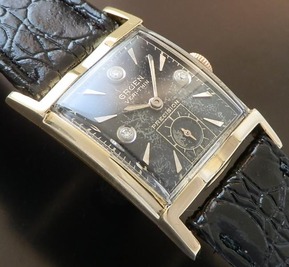その名の如し薄型により拘ったモデルは、ダイアルにその名を刻みカーベックスとは違う世界を歩みだす。しかしその様相は明らかにカーベックスケースでありながらその名は、”VERI-THIN”、440カーベックス専用キャリの厚さ4.60mmに比べ、4.05とかなり薄くなっており、二つとも開発は1940年頃となりほぼ同時期、なぜカーベックスがありながら、同じ系統のモデルを製作したのかは何故かはわからないが、当然、必要であつたのは確かであり、当時のメーカーの技術力を世間に認めさせる最大のひとつの方法が、薄型へのプロセスだったったことは確かである。又、そもそもグリュエンはカーベックスとしてパテントをとったキャリバー搭載モデルをカーベックスとして発表し、ケースの形状自体をカーベックスと呼ぶプロセスとして存在はさせなかったことも事実。既に70年の時が経とうとしているここのストーリーは、考えれば考えるほど謎、課題は多くなるが、これだけは言えよう。