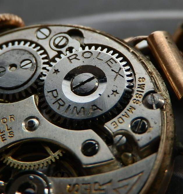 そんな最高のムーブメントを搭載する今回の一品は、30年代頃の一品、黄金の20年代、第一次世界大戦が終結、欧州諸国が戦争の爪痕残る中、アメリカを中心に産業革命が起こり、ラジオ、洗濯機、冷蔵庫などか普及、それに伴い家事だけの女性像から社会へ進出する女性像へと変わっていく。それは時計の分野においてもジュエリー色の強かった女性の時計が時間を計る社会に対応する時計へと役割を変え、ダイアルも小さく見ずらいインデックスから視認性の高い大きいインデックスに変わっていった。当然その歴史を感じるこの一品は、ダイアルは20年代後半から流行り出したブレゲナンバーのアワーズを大きく表現し、視認性を高くする為にアワーズのナンバーをサークル上に描くこととなり、それが後、テレフォンダイアルと呼ばれるようになる。機械の内部もそれまでの女性の時計には全く必要としない精度の部分も6姿勢差調整で”FOR ALL CLIMATES”の通り、温度差への調整も行われている。又、角穴車には30年代頃よりロレックス社自身の調整3段階レベルとしたPRIMAの称号も与えられた。当然、その証はラグが未だ取り外しの出来ないハメゴロシの9金無垢ケースの裏に刻まれた”7RECORD”のように7つのゴールドメダルを天文台コンクールデ獲得した証もあり、この一品が9金無垢という現代ではないケースを伴い一見キュートで可愛らしい女性を、表現するクッションシェイプでありながらも、メカニカル的にも信じられないほどのクオリティーを女性の時計として見出した1920年から30年代初期の時代を象徴する希少な一品であることを皆さまにお伝えしたい。