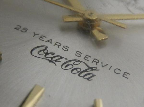 それも今回のモデルはダイアルに刻まれたように、コカコーラ社が25周年勤続の記念とした一品”クオーターモデル”、1950年代に入りアメリカでは、第二次世界大戦が終わりゴールデンエイジと呼ばれる自動車、電気製品など、産業革命の時代に突入し、スイス時計ブランドに各企業が自社の勤続年の高い社員に贈呈品として時計を受注した。ロレックスでは、1930年頃からカナダ、トロントのカナダ支社設立のきっかけとなったカナダ最大デパートであったイートン社とのクオーターセンチュリークラブで有名なコラボモデルは有名だが、他ではフォード社など様々な企業からの依頼を受けた。その中でも今回のようにコカ・コーラ社とのコラボモデルは人気が高いが、ミッキーモデルのすべてが偽物であった事実のように、企業のダブルネームのほとんどが偽物であるのも事実である。そんな中、真実としての25周年の勤続モデルの刻印をバックケースに刻んだクオーターモデルは、なかなか市場に出回らない。特に今回の一品はその驚きだけではない。当然ケース、バックケース、ダイアル、ムーブメントの状態もいいが、何と竜頭はセンターがトップとなった60年代の400竜頭、そしてアクリルの風防も長年の温度差により収縮を繰り返したことで風防の中にしわが芸術のように出来た純正もの、更に尾錠も60年代のトリアシバックル、そして奇跡なのは既に硬質化してしまったが、クロコダイルの本革ストラップも60年代の純正ストラップ、そして最後にこのモデルが100年経っても永遠価値として残る当時の箱、プライスタグ、クロノメータータグ、そしてこのモデルの純正のギャランティー、クロノメーター証明書まで付属した言葉にならない最高の一品であることをお伝えさせて頂きたい。