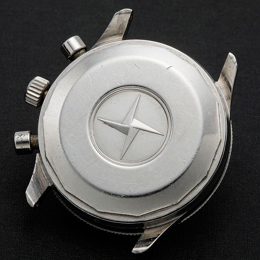 | 【商品説明】 1865年ジョルジュ・ファーヴル=ジャコがル・ロックルに創業し、当時、ルクルト、ロンジンと並び、世界三大マニユファクチュールとして、自社ムーブメントに対して徹底した開発への魂を注ぎ込んできたゼニス。1969年、ホイヤー、ブライトリング陣営による世界初自動巻きクロノグラフ”CAL.11”の開発より3ヵ月遅く自動巻きクロノグラフ”エルプリ/3019CH”を開発したが36000振動という高振動自動巻きクロノグラフは当然実質上自動巻きクロノグラフの世界では最高峰とも言えよう。 当然ご存じ如く20世紀を跨ぎ、長きに渡りクロノメーターコンクール御三家としてもロンジン、オメガと共に世界にその名を轟かせていったゼニスであるが、ゼニスが唯一、成し得なかったのが現在ではゼニスの顔となるクロノグラフの開発である。オメガはレマニア社を吸収することにより、伝説”27CH/320,321”を世に出し、当然ロンジンは現在でも世界最高峰クロノグラフキャリ”13ZN,30CH”など、1950年代、ゼニスは完全に後発となったのは言うまでも無い。ゼニス自体、ユニバーサル社と共に1940年頃よりお馴染みユニバーサルCal.281同様に1911年スイスのヌーシャテルのカントンでジョージ・ペラトン・ステウドラーにより創業され驚異的技術を誇った”マーテルウオッチカンパニー”。マーテル社にクロノグラフのエボーシュを頼っており、ユニバーサルはcompax/コンパックス、ゼニスはcompur/コンパーとしてクロノグラフとして高い評価を得ることとなる。 しかしその後、ゼニスはマーテル社と同じく当時クロノグラフメーカーとして高い評価を得ていたエクセルシオパークからCal.4をベースとし143系クロノグラフキャリをくろ世に出したが、1960独占契約、買収にも至らず、当時12時間積算系が必然条件とされていたアポロ計画で既に上位を決めていたオメガ、ロンジン、ロレックスからは完全差をつれられていたことは事実であろう。当然、世界の時計メーカーが名乗りを上げ、セイコーでさえも選抜されたアポロ計画を意識していたのは言うまでもない。そんなゼニスに転機が訪れたのは、マーテル社からの見受けの話であつた。1958年、ゼニスは再び、マーテル社と組むこととなり1959年、念願であったクロノグラフを自社の名で生産することに成功した。その名は”キャリバー146”マーテルCal.749をベースにクロノグラフモデルを誕生させた。 その一品が今回の逸品である。 40mmサイズを誇るそのダイバーケースは迫力のある存在感丸出しのラウンドから流れるシャープなボディーの曲線、ラグの先端までの鋭利な造形美は、この一品の品格を思う存分、官能出来る最高のシチュエーションとなり、ダイバーベゼルのインパクトのかっこよさは見た者が我を忘れ、最高のステイタスとして感じることが出来よう。モデルは”A277”、機械は前期の146H。ブレゲヘアスプリングに昔ながらのトップ型緩急針、耐震インカブロックアブソーバーと後期HPとは仕様が違い、Hのほうが技術的な要素も含め、我なりには前期Hのほうがクオリティーの高さは半端ではない。竜頭も初期のスターマークだけのビンテージステイタス。文字盤も販売当時のままの状態で、かなりヤケが出ており、薄くなっているレターもあり、カビは生えてはいないが、まるで自然なカビ臭さ、経年による色落ちがたまらないビンテージ最高のプロセスとなっている最高の逸品として皆様にご紹介したい。 ★★★ Z E N I T H ★★★ Legendary Turning Bezel “DIVER CHRONOGRAPH” Water Proof Screw Back Case .伝説回転ベゼル ”ダイバークロノグラフ” 防水スクリューバックケース R e f . A 2 7 7 SUB-SEA/サブシー ☆☆☆ 1960年代製造ビンテージ ☆☆☆ (メンズ/平置日差;+60秒/振り角;225°/片振:1.5ms/拘束角:55/クロノグラフ完全稼働) ※タイムグラフ実測での数値ですが、環境により変化致しますので、あくまでも目安すとしてお考え下さい。 ![]() ★☆★ Cal.146H ★☆★ VIBRATION(振動数):18000/時 JEWEL NUMBER(受石数):17石 BREGUET SPRING BALANCE(ブレゲヒゲゼンマイ) INCABLOC SHOCK ABSORBER(インカブロック耐震) SPRING BALANCE WHEEL(チラねじテンプ) PILLAR WHEEL(ビラーホイール) CARRING ALARM(キャリングアーム) RUNNING RESERVE:40時間 【刻印】:(ZENITH 146H) 1960年頃製造純正 ブラック文字盤12時間積算計クロノグラフ3レジスター 【刻印】(☆ ZENITH SWISS MADE) 【状態】ダイアル全体に経年のヤケが綺麗に出て最高のビンテージコンディション 1960年頃製造純正 バーアワーマーズ & アルファー夜光針 【状態】夜光がかなり色褪せ独特なビンテージ感フエィスとなりたなまらない最高の漂いである 1960年頃製造純正 ステンレススティール回転ベゼル & ブラック60セコンドスケールディスク 【状態】ベゼルディスクは色褪せレター落ちもあり最高のビンテージ感がたまらない。 1960年頃製造純正 ステンレススティール ☆ホールマーク竜頭 【状態】剥がれ、変色ございます 1960年頃製造純正 ステンレススティールミドルケース 【サイズ】40mm(リューズ含44.5m