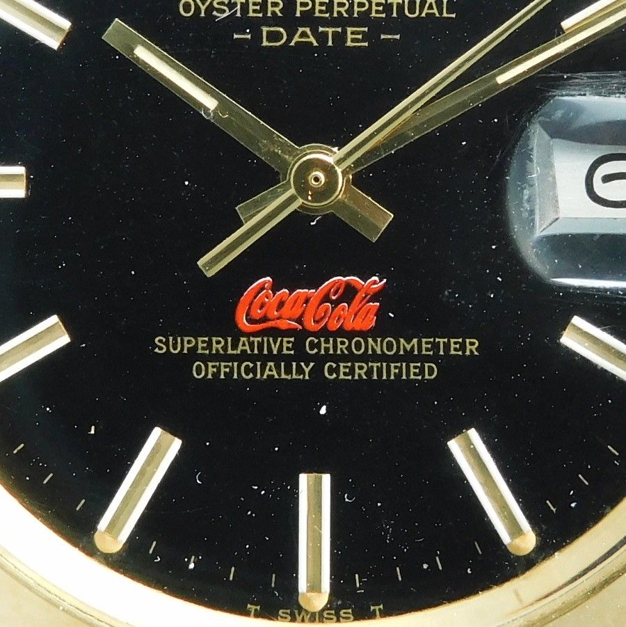 幻の逸品14金無垢☆ブラックミラーレッドコーク★ロレックス オイスターデイト Ref.1500 コカ・コーラ勤労25年モデル★1975年14kリベット