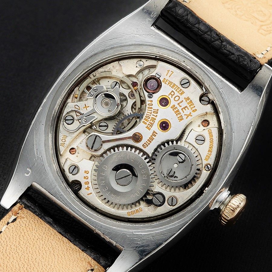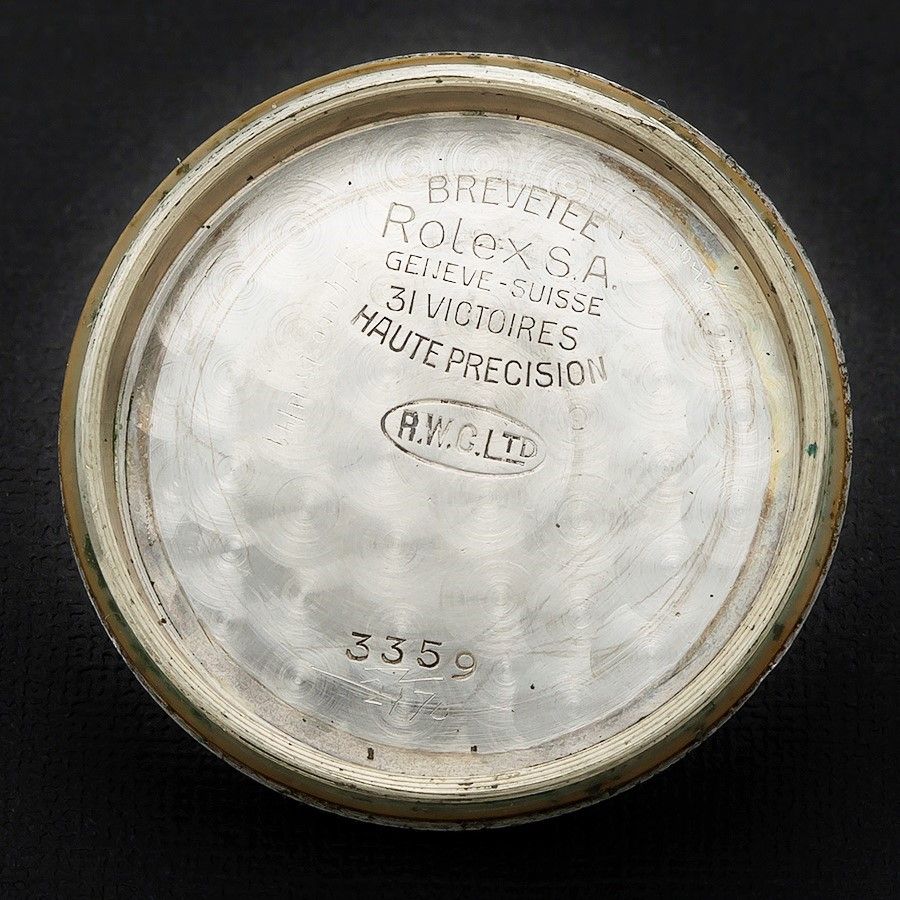 | 【商品説明】 1924年から長きに渡りロレックスの歴史の中に息づいてきたオイスターのプレシジョンスタイルは、1930年に入り、20年代に大ブレイクしたアールデコの角型デザインから一変、アールヌーボースタイルである20年代以前のラウンドスタイルが見直され、30年に発表されたラウンドと角型の共有として当時、世界の人々を震撼させたバイセロイやアーミーなどのモデルも誕生、バブルバックの自動巻きの到来で手巻きのスタイルが落ち込むことはなく、多種多様なペットネームでプレシジョンスタイルは、30、40年代、黄金時代を迎えたと言っても過言ではない。 その30年代に入ると、同じリファレンスでありながら、その用途によりペットネームを変え、幅広い顧客層の獲得にマーケティング戦略を置いた。特に特徴的なのは、その流行に敏感であったロレックスであったように、第一次世界大戦が終わり、怒涛の20年代と言われるとおり、アメリカを中心にしてヨーロッパへと経済産業が発展していくと、Ref.3139のようなARMYやCOMANDいう軍用タイプの頑丈な防水ケースのものからラウンドのラグジュアリー系のものへと変わっていき、ロングセールとなったスピードキングやロイヤル、ファイヤーフライなど様々なペットネームを世に誕生させていった。 そんな中、ARMYのデザインの原型となったと言われるのが、今回ご紹介する通称”VICEROY/バイセロイ”の名をペットネームとして与えられたモデルである。基本ラインとしては3000番台リファレンスとなり、3116,3359,3316などが有名であるが、ダイアルにその名を刻まないモデルとして同じ共有ケースを使用したモデルもいくつか存在した。 今回ご紹介する逸品は、バイセロイの中でもスタンダードとされ、代表的モデルであるRef.3359。一般的であるが故にほとんどがリダンであり、針は社外、ガチャが多いモデルとして全て純正パーツを備えた一品を探すことは不可能とも言われている。 Oyster “VICEROY” 14K Solid Rose Gold & Salmon Pink Dial オイスター “バイセロイ” 14金無垢ローズゴールド & サーモンピンク文字盤 R e f . 3 3 5 9 ☆☆☆ 1944年頃製造ビンテージコンディション ☆☆☆ 現在(歩度:+50-60秒/振角:180前後/片振角:2.0※温度、湿気など環境に変化致しますのでこの数値でのお約束ではございません) ☆☆☆ 特定情報 付属品 ☆☆☆ 文字盤は当時のオリジナル(リダン無し).付属品無し ☆ 1944年頃製造純正 サーモンピンク文字盤 w/偶数数字&バーラジウム夜光アワーマーカーズ24時間スモールインダイアル ☆ 【刻印】(ROLEX OYSTER VICEROY CHRONOMETER SWISS MADE) 【状態】80年以上の時を完璧にその当時のままの状態で伝えている最高のビンテージコンディション ☆ 1944年頃製造純正 ラジウム夜光ブルーステイールベンツ時分針 ☆ 【状態】80年以上の時を完璧にその当時のままの状態で伝えている最高のビンテージコンディション ☆ 1944年頃製造純正 14金無垢ピンクゴールド “ドット&バースケール彫金ベゼル” ☆ 【状態】目立つキズ、打痕などござまいせんが磨き痕はございます。かなり状態はいいです。 ☆ 1944年頃製造純正 14金ピンクゴールド張り オイスターパテント竜頭 ☆ 【状態】目立つキズ、打痕などござまいせんが磨き痕はございます。かなり状態はいいです。 ☆ 1944年頃製造純正 ステンレススティールミドルケース ☆ 【サイズ】23mm(リューズガード含めず/含み25mm)×27mm(両側ラグの先端まで) 【状態】目立つキズ、打痕などござまいせん。磨きはかかってござますが、痩せ感はほぼございません。 ![]() ☆ 1944年頃製造純正 ステンレススティールスクリューバックケース ☆ 【刻印】BREVETEE ROLEX SA GENEVE – SUISSE 31 VICTOIRES HAUTE PRECISION RWC LTD 3359 【状態】目立つキズ、打痕などござまいせん。磨きはかかってござますが、痩せ感はほぼございません。 ☆ 社外 アクリルプラスチック風防☆ 【状態】当社で風防は交換させて頂きました ☆ 社外ハンドメイド クロコダイルストラップ 本革 ☆ 【刻印】MONTRES ROLEXSA GENEVA SWEZERLAND PATNTED 18k 0.750 66 【状態】新品: ![]() ★☆ Cal.710 ☆★ CHRONOMETER 7POSITIONS ADJUSTED(7姿勢差クロノメーター調整) SUPER BALANCE(スーパーバランステンプ) BREGUET HAIR SPRING BALANCE(ブレゲひげゼンマイ) SWANNECK ADJUSTMENT(スワンネック緩急微調整式) VIBRATION(振動数):18000振動/h JEWELS NUMBER(受石数):17石 【刻印】:(ROLEX GENEVA UNADJUSTED TO SEVEN 7 POSITIONS SEVENTEEN 17JEWELS CHRONOMETER SUPER BALANCE PATENTED) |