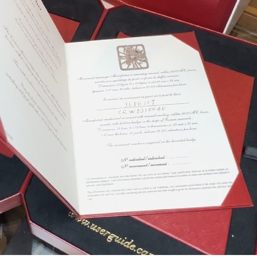 1904年11月12日、アルバート サントス・デュモンが機械式の飛行に初めて成功した。 『his flying machine had flown 75, 128, and 142 yards, decided to return to his starting point by going against the wind. For thirty yards the motor ran along the ground, then suddenly it rose to a height of about five yards, and appearing like a great white bird, it soared half-way down the course. M. Santos Dumont, startled by some spectators in his way, twisted his rudder quickly, and the machine came heavily to the ground, damaging one of its wings. The experiment, however was a triumph for actual flight was achieved; and it seems as though it were only a matter of time for the conquest of the air to be accomplished. The 235 yards were traversed in twenty-one seconds.”』 1904年11月12日、アルバート サントス・デュモンが機械式の飛行に初めて成功した。 この事実は上記の記事と共に写真が付けられ世界全土を駆け巡った。そしてこれをきっかけに彼の友達であった当時フランス貴族達愛用のジュエラーとして名を馳せていた”ルイ・カルティエ”が時計を考案することを誓った。そして1909年、後、ジャガールクルトとなるエドモンドジャガーをプロジェクトリーダーとして迎え、ここに名機となるサントス1904が誕生した。そしてその勢いは第一次世界大戦が始まると、戦争での必需品となるモデルを1917年ルノーFT17軽戦車にインスパイアされ、プロトタイプ1918年に作成、アメリカ陸軍であるジョン・J・パーシング将軍にプレゼントしていることで、アメリカ軍とのオフィシャル契約としての受注を考えていたことは言うまでもない。そして1919年にタンクノルマルを発表し、そのデザインは、当時から今日まで、そのデザインを変わらずにいることで、誰もがタンク造形=カルティエと一目で理解できるようになったことは、2015年、本格的にマニュファクチュールとしてカルティエが1847MCを開発し、この機械によりヴァシュロンなど、リシュモン内でもこの機械をエボーシシュとして重要な存在となっていった。そして1916年、手巻きの薄型キャリバーとして、9619MCが誕生していく。この機械は、薄型にも拘わらず、2つのゼンマイを擁することで、72時間というロングなパワーリザーブを誇り、緩急針部分には微調整の部品にCARTIERのCを形どったパーツを使用、ひげ持ちもシンプルで調整しやすく、緩急針は時計の歴史上で最大の信用をおけるキフ型を採用。28800振動を可能とする為によりサイズダウンした機械となり、それにより2,3,4番車のブリッジまでをも文字盤のデザインに変えてしまった。そんなMCたる自社キャリ9619MCを搭載した今回の逸品は900万以上の定価として見事にカルティエは成功を遂げた。軍用の歴史を繋ぐ本来のタンクそのもの意味をなす真実のタンクと言っても過言ではない。W5310040…最高のカルティエストーリーが28800振動の鼓動と共に聞こえてくるただろう。