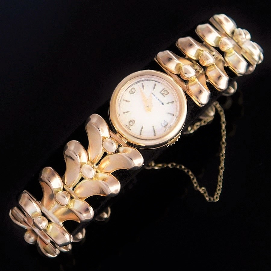 激激希少1945年頃製造9金無垢ブリティッシュ市場★ジャガー・ルクルト カクテルリボン★名機キャリバー496バック竜頭
