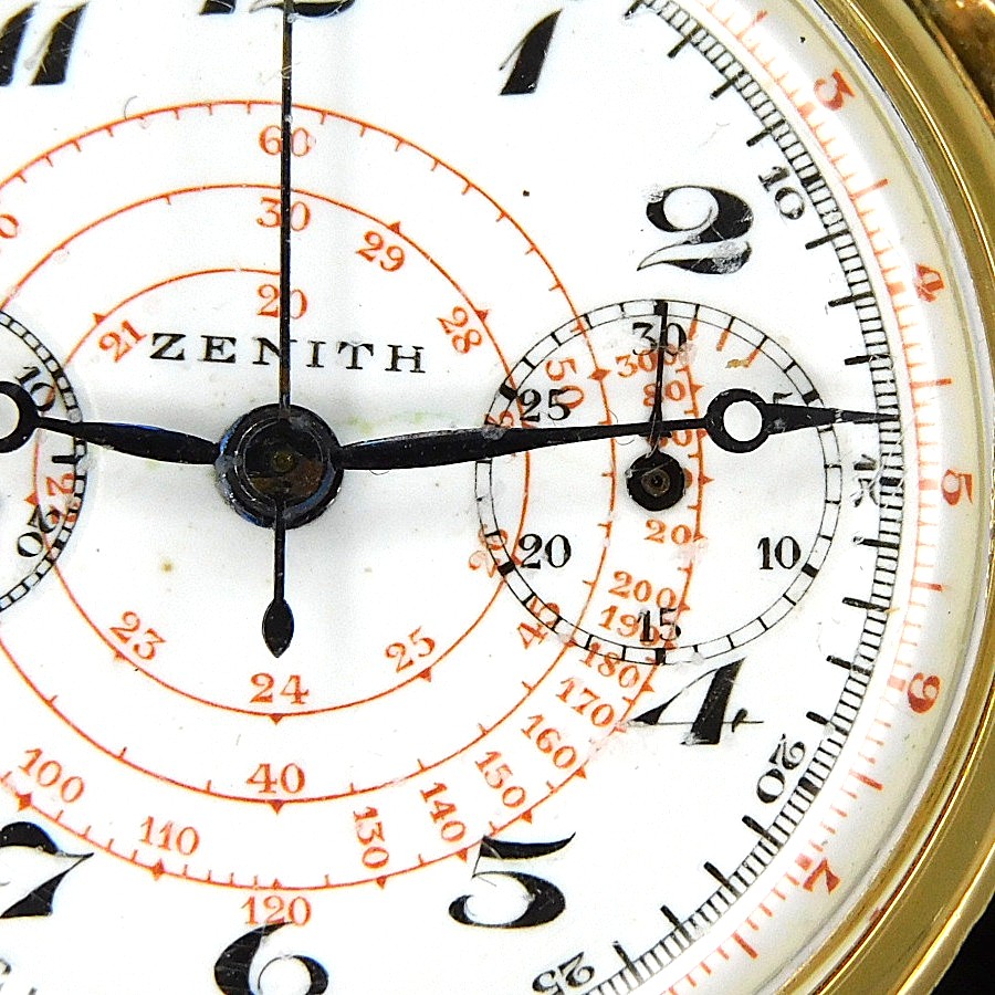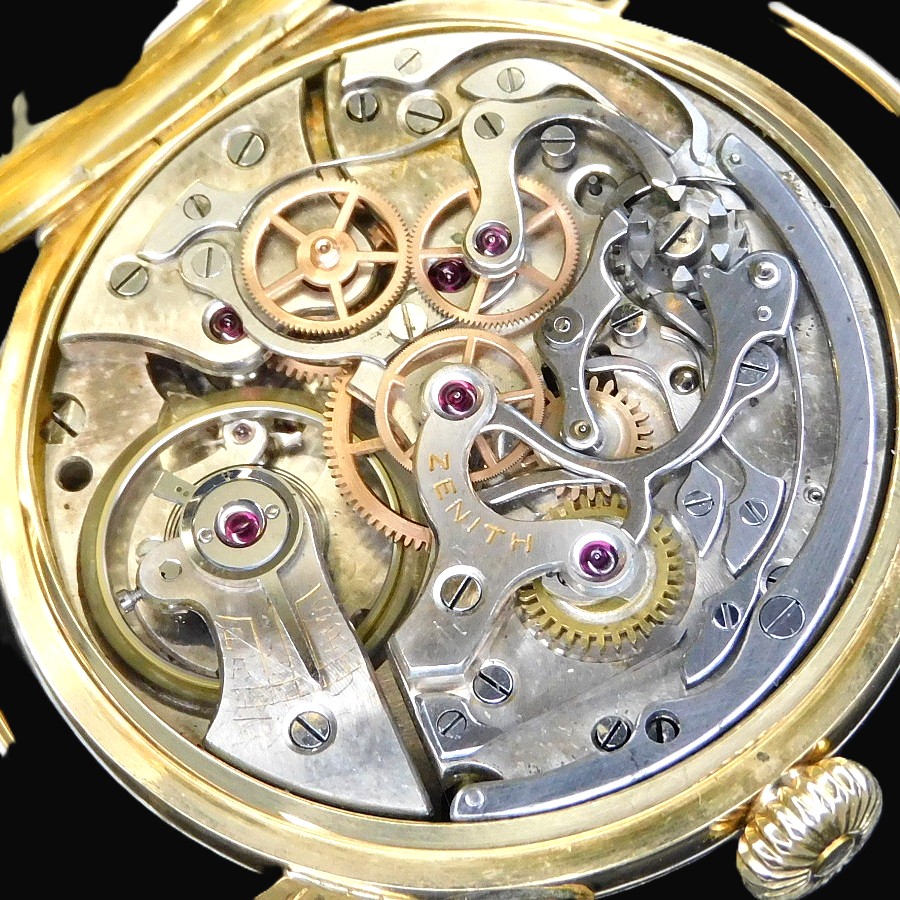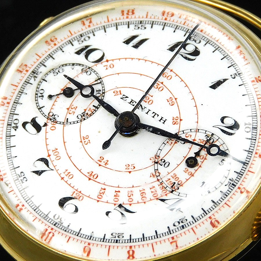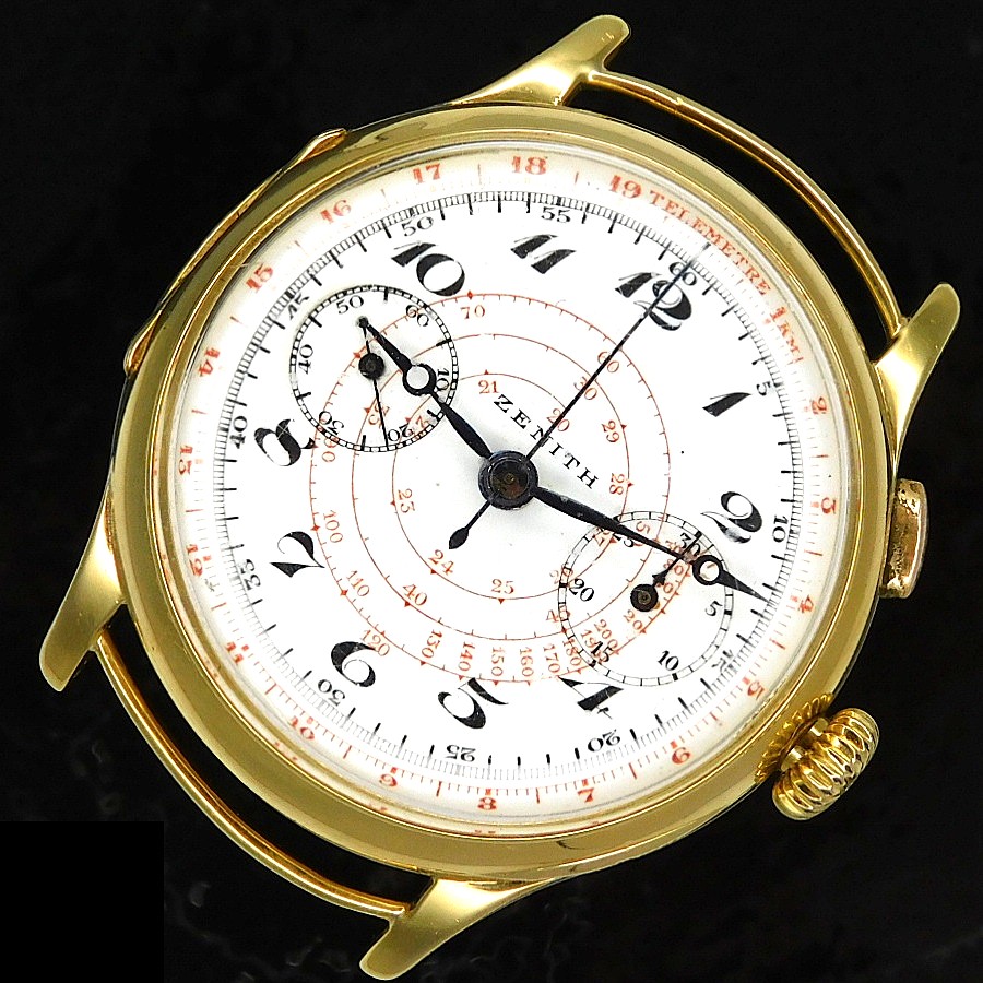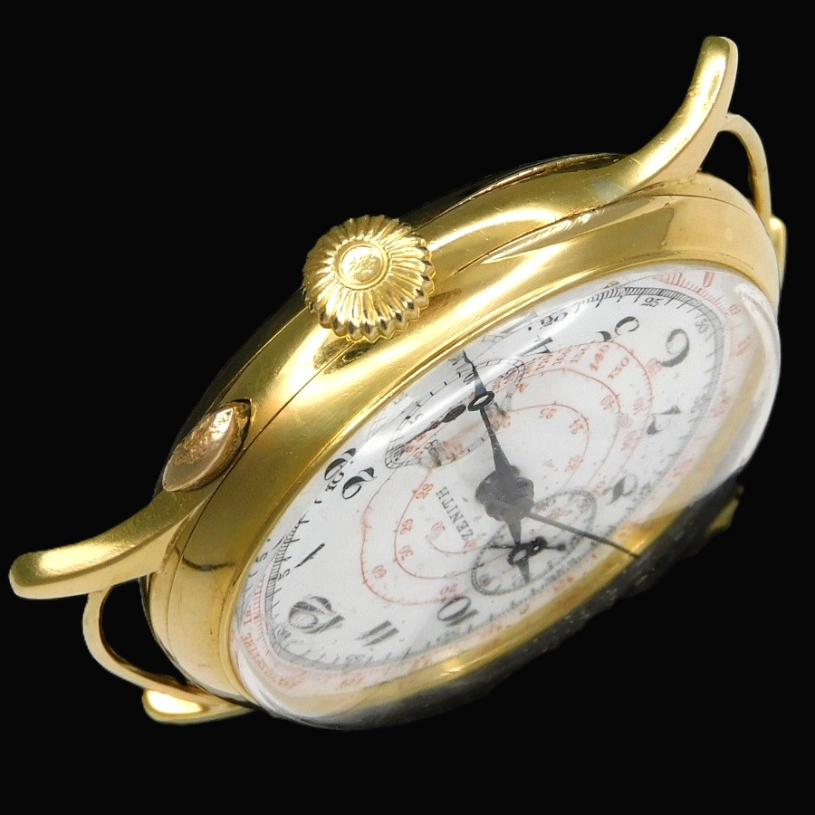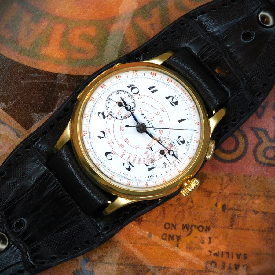 幻1920-30年代製造☆ポーセリング文字盤☆38mm18金無垢ハンターケース★ゼニス ワンプッシュクロノグラフ★名機バルジュGHT(22キャリ)