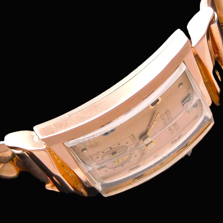 幻の逸品。14金無垢レッドゴールド湾曲ボディー★グリュエン カーベックス Ref.440.577★伝説湾曲キャリCal.440.