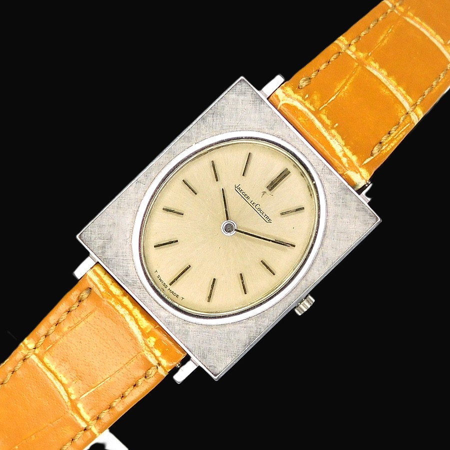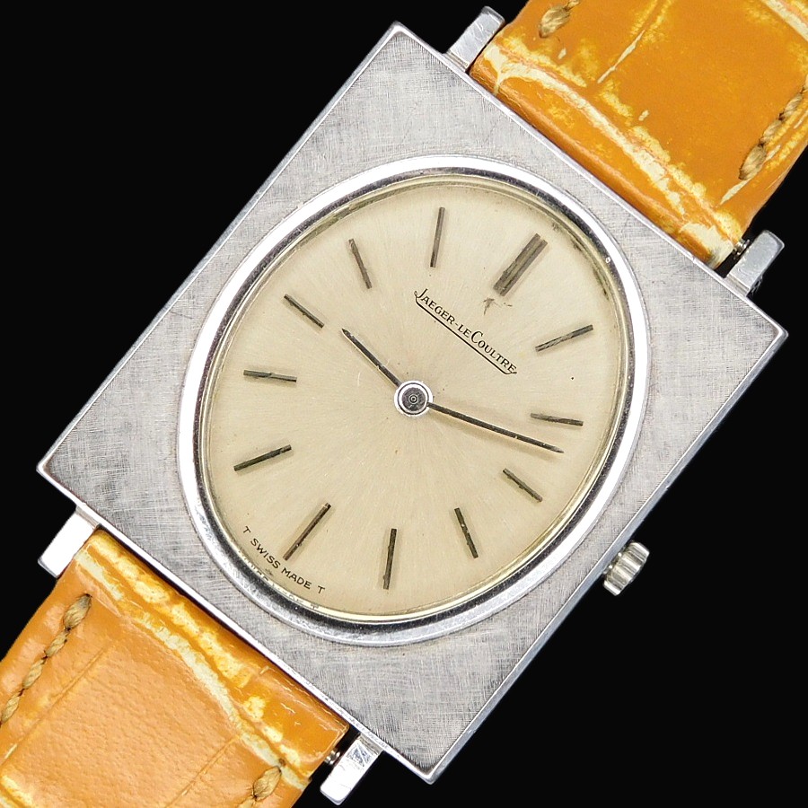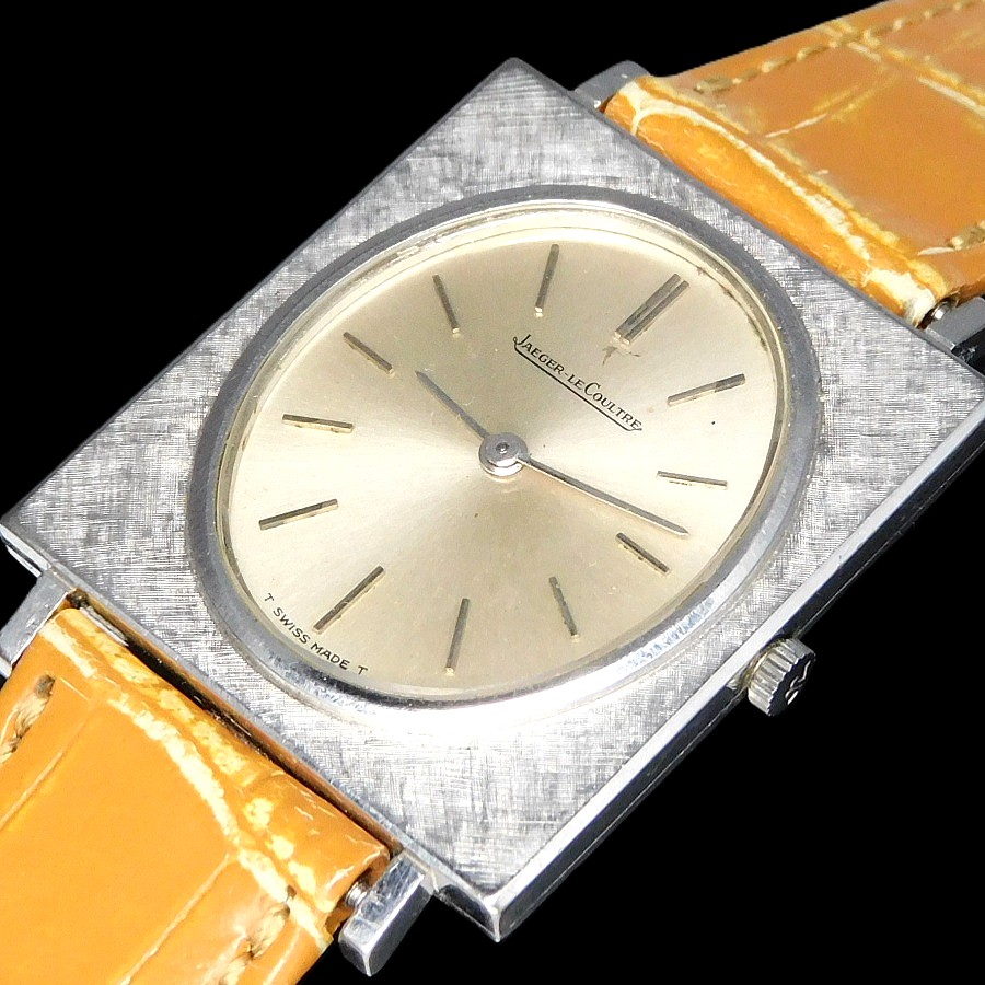 激希少レベルソ伝説名機Cal.838☆18金無垢ホワイトゴールド彫金★ジャガー・ルクルト タンク★1962年開発1.6mm薄型名機☆純正SS尾錠