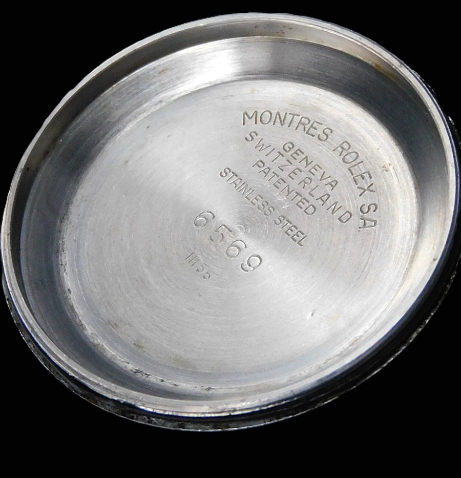 ロレックスのサブの6538やトゥールビート6556など、数多くの伝説モデルを1030キャリは誕生させているが、やはり1030を語る上でノンオイスターモデルは欠かせない存在であること間違ない。その筆頭となるのが6564,6567であるが、その文字盤の多様なデザインから6569もかかせない存在であるのは間違いない。その様相は手巻きの6422と比較される人気のあるモデルであり、当然、この1950年から1959年の間でしかないその立体的である”ROLEX”の紋章は最高のステイタスであることは間違いないが、この6000番台のモデルの中でもノンオイスターモデル特有のスピール型のアワーマーカーズとして表現しているその様は、芸術アートとしての存在価値として感じることができよう。更に1007の先代モデルとしての存在通り、フィクス型のエンジンベゼルは最高の存在価値をこの一品として与えていると云っても過言ではない。