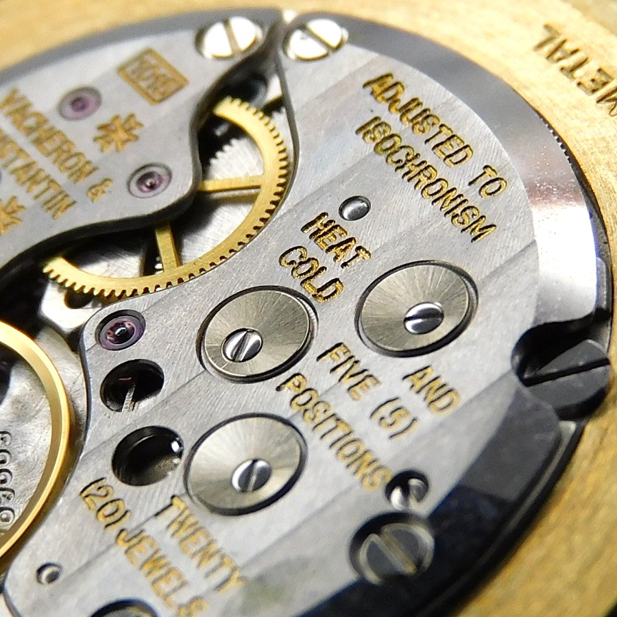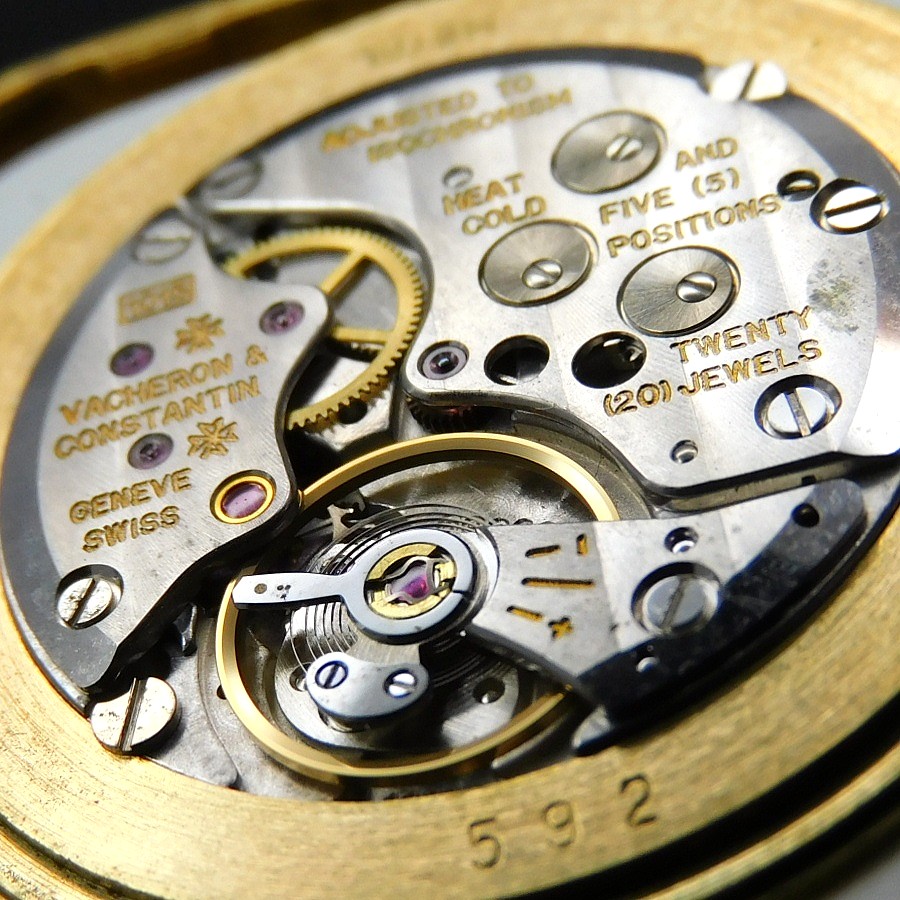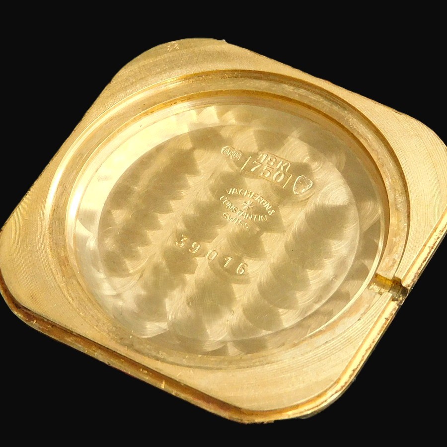 28800振動として手巻き機械としては初となる1977年開発の1015キャリの20.8mmというサイズの考え方を覆すほどの存在感をラウンドとしては38mmほどのケースサイズと同等である32mm というスクエアー型に共存させたこの逸品 “Ref.39016” 一目でそのワイドボディーの存在感の中に一際目立つ独特の輝きを放つシェルの一枚殻を使用した文字盤は徹底的に高貴な存在感を与える。そのシェル文字盤を包みこむスクエアー型のケースは更にその存在価値を極めかのようにホワイトゴールドとイエローゴールドのバイメタルのオーラを辺り一面に放っている。流石に見た者は脳裏から離れられない最高値のボルテージへと導かれることは間違いないだろう。その真の部分である伝説と謳われた1015キャリのストーリー… 1960年頃よりクロノメーター規格の30mm以内というプロセスの中で、各メーカーはチラネジ調整を基本とし、ブレゲヒゲゼンマイが最高の天輪のブレを無くすことから一般的に精度の確信と考えられ18000振動がその限界数値として考えられ、その先にロレックスの1570のようにヒゲゼンマイでの19800への高振動化で精度を高めていく思考により、部品の軽量化に伴い振動数も上がっていった。ルクルト社は様々なケースに合うように機械も様々なサイズを開発することで、レディースとしたもともと21600振動の存在をメンズにモデルに合うようにモディファイすることでロング製造の機械を生み出した。特に818キャリは1959年に製造されたが、20.9mmという特性を生かし、18000振動始動から1992年には21600振動にすることで精度の象徴としての基本ベースともなった。 そのルクルトのマニュファクチュールの歴史の中で、28800振動という偉業を成し遂げたのが1970年の916アラームから1975の伝説906キャリが有名だが、そのサイズを生かし、3針モデルとして初の28800振動として世にだしたのが、1975年に解発されたキャリバー895である。その伝説達は当然、ルクルトにとどまらず、それまで株式資本として繋がっていたヴァシュロンコンスタンタンには1015という名を与え提供した。23,4番車ガンギをひとつのブリッジに簡素化することでスペース配分をより少なくし20.8mmというサイズを生かしながらも平ひげゼンマイはより大きい天輪にし、スムーステンプにより高振動化プロセスとして仕上げた最高の機械である。 ★★★ VACHERON CONSTANTIN ★★★ 18K Solid Yellow & White Gold “WIDE SQUARE” Shell gloss Dial 18金無垢イエロー&ホワイトゴールド ”ワイドスクエアー” シェル光沢文字盤 /FONT> ☆☆☆ 1977製造ビンテージ ☆☆☆ (メンズ/平置日差;+30秒/振り角;265°/片振:0.5ms/拘束角;52°) ※タイムグラフ実測での数値ですが、環境により変化致しますので、あくまでも目安すとしてお考え下さい。 バンド、バックル以外完全純正オリジナル※ダイアルはリダン痕は全くございません。 ☆☆☆ 奇跡のオリジナルコンディション ☆☆☆ ダイアル裏の爪足の偽造痕のチェック、リダン痕のチェツク済み 完全オリジナル シェル文字盤※ダイアルも含め完全オリジナルコンディション ★☆★ Cal.1015 ★☆★ SUPER FINE ADJUSTMENT BALANCE WHEEL(微調整緩急針) ADJUSTED TEMRATURE (温度差調整) COTE DE GENEVE(コートドジュネーブ) YEARS OF MANUFACTURE(製造年):1977年 RUNNING RESERVE(パワー時間):38時間 VIBRATION(振動数):28800/時 JEWEL NUMBER(受石数):20石 SMOOTH BALANCE WHEEL(スムースゼンマイ) 【刻印】VACHERONCONSTANTIN ADJUSTED TEMPRETURE 20 JEWELS FIVE HEAT COLD 5 FIVE POSITIONS SWISS MADE ☆ 1977年頃製造製造純正 シェル光沢一枚殻 文字盤 ☆ 【刻印】:VACHERON CONSTENTIN SWISS 【状態】:(完璧です) ☆ 1977年頃製造純正 18金無垢イエロー&ホワイト バイメタルゴールド ワイドスクエアーケース ☆ 【サイズ】:32mm(リューズ含めず/含み28mm)×35mm(両ラグ先端まで) 【状態】:(当社では磨きはしてございませんが、目立つキズ、打痕などは一切ございません) ☆ 1977年頃製造純正 18金無垢竜頭 ☆ 【状態】:(完璧です) ☆ 1977年頃製造純正 18金無垢イエローゴールド スナップバックケース ☆ 【刻印】: VACHERON CONSTANTIN SWISS GENEVE 18K 0.750 301916 ●●●●●●(シリアルナンバーは画像上で消しておりますが、しっかりとございますのでご安心下さいませ。 【状態】:(当社では磨きはしてございませんが、目立つキズ、打痕などは一切ございません) ☆ 社外クロコダイル本革ストラップ & 社外尾錠 ☆ 【状態】:(ビンテージの漂いが素晴らしい) |
