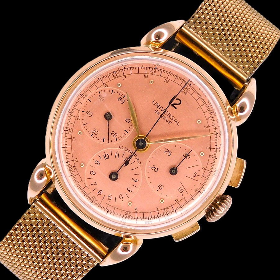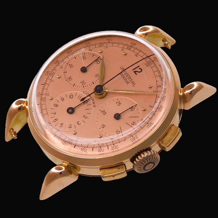 18金無垢レッドゴールド ビッグホーン(角)ラグ★ユニバーサルジュネーブ コンパックス★12時間積算計クロノグラフCal.283 / COMPAX 18K SOLID RED GOLD