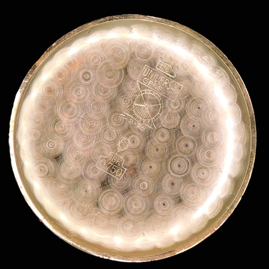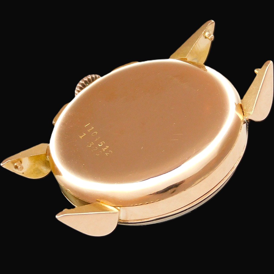 | 【商品説明】 33mmの造形から繰り出す大きく角のように伸びたる存在は赤き紅のオーラは、見た者全ての脳裏から離れられない存在価値そのものである。それはビッグホーンラグと呼ばれ、造形の美として芸術そのものと言えよう。 しかしそのオーラの根源は18000振動としてキャリバー283の語らいをユニバーサルジュネーブそのそのものとして表現していると言っても過言ではない。 キャリバー283 軍用として必要性が高まっていった時代、世が戦争に向かっていった30年後半からアンジェラス、エクセルシオパーク、レマニアなど高級エボーシュメーカーからバルジュ、ヴィーナスなどのその時代の中枢を担ったエボーシュメーカーが乱立する時代に次々とクロノグラフのモデルが誕生していった。その中、クロノグラフという世界にモジュリングという新たな血しぶきを開花させ、それぞれのシチュエーションの中で、それに応じたペットネームを創り上げたのが”ユニバーサルジュネーブ。1941年、ムーブメント製造会社をスイス、ポンドマ-テル(1911年創業マーテル社)に”設立、30分積算計付き2レジスター『ユニコンパックス』を筆頭にパイロット用の『アエロコンパックス』、31日のデイトダイアルを装備させた『ダトコンパックス』、そしてコンパックスシリーズの頂点に達する『トリコンパックス』と誕生させていった。そのコンパックスシリーズのユニコン、メディコン、そしてダトコンなどほとんどのモデルのモジュリングを手掛けてきたのがこの”キャリバー283”である。当然その奥から聞こえる”283キャリ”の鼓動はは黄金でザラツキのある風格たる地盤の様相”ゴールドフィニッシュ”。細かく砕いた金メッキした真鍮の粉を吹き付け丹念に磨きあげる…そこに仕上がったものは幾年の時を経ても腐食することも無く永遠の耐久性を得ることが出来る。そんなプロセスに彩られたパーツの中に一際でかく精度を高める神聖領域としてそのチラねじを配したテンプが、風切る荒波としてそのデカテンプを受け止めるかのようにガンギとアンクルが18000振動のロービートを奏でる。 ★★★ UNIVERSAL GENEVE ★★★ 18K Solid Red Gold ” COMPAX” Big Horn Lug 18金無垢レッドゴールド “コンパックス” ビッグホーンラグ R e f . 1 320 ☆☆☆ 1940年代ビンテージ ☆☆☆ 付属品無し。 ☆☆☆ 当社にテンプ調整済み ☆☆☆ (メンズ/日差;+60/振り角;235/片振り:0.5/拘束角:50°※テンプ、アンクル洗浄、注油、緩急針にて調整済) 動作保証3ヶ月(ヤフオク購入の場合/店内販売は動作2年保証) ※タイムグラフ実測での数値ですが、環境により変化致しますので、あくまでも目安すとしてお考え下さい。 ☆☆☆ オリジナルオールコンディション ☆☆☆ ダイアル裏の爪足の偽造痕のチェック、リダン痕のチェツク済み 文字盤は純正です。当社で再生させて頂きました。オリジナルのデザインと寸分狂いなく綺麗に再生させて頂きました。 ☆ 1940年代純正12時間積算計クロノグラフ サーモンピンク文字盤 ☆ 【刻印】:UNIVERSAL GNENVE COMPAX SWISS MADE 【スペック】12時間積算計クロノグラフ / 3時位置:30分積算計 . 6時位置:12時間積算計 . 9時位置:永久秒針 . センター位置:秒積算計 .時分針 【状態】:(全体的に綺麗ですが、10側ラグがやや変形してございます。直しは可能です) ☆ 1940年代純正18金無垢レッドゴールド ラウンドケース w/ ビッグホーンラグ ☆ 【状態】:(目立つキズ、打痕などございのせん。状態もかまりいいですが、10時位置のラグに変形ございますが、修復は可能です) 【サイズ】: 33mm/横径リューズ含めず×45mm/両ラグ先端まで) ☆ 1940年代純正18金無垢レッドゴールド スナップバックケース & プラスチック風防☆ 【刻印】:(UNIVERSAL GENEVE 18K 0.750 / 1104512 1 320 ) 【状態】:(全体的に綺麗で目立つキズございませんが、一か所小さな打痕がございますが、気が付かない程度のものです) ☆ 純正本革クロコダイルブラックストラップ & 純正GP尾錠 ☆ 【状態】:未使用の状態 ★☆★ Caliber.283 ★☆★ VIBRATION(振動数):18000/h JEWEL NUMBER(受石数):17石 RUNNING RESERVE(パワーリザーブ):40時間 12Hours Chronograph (12時間積算計付きクロノグラフ) SCREW MONOMETAL BALANCE(チラネジモノメタルテンプ) BUILT(製造期間):1941年 |