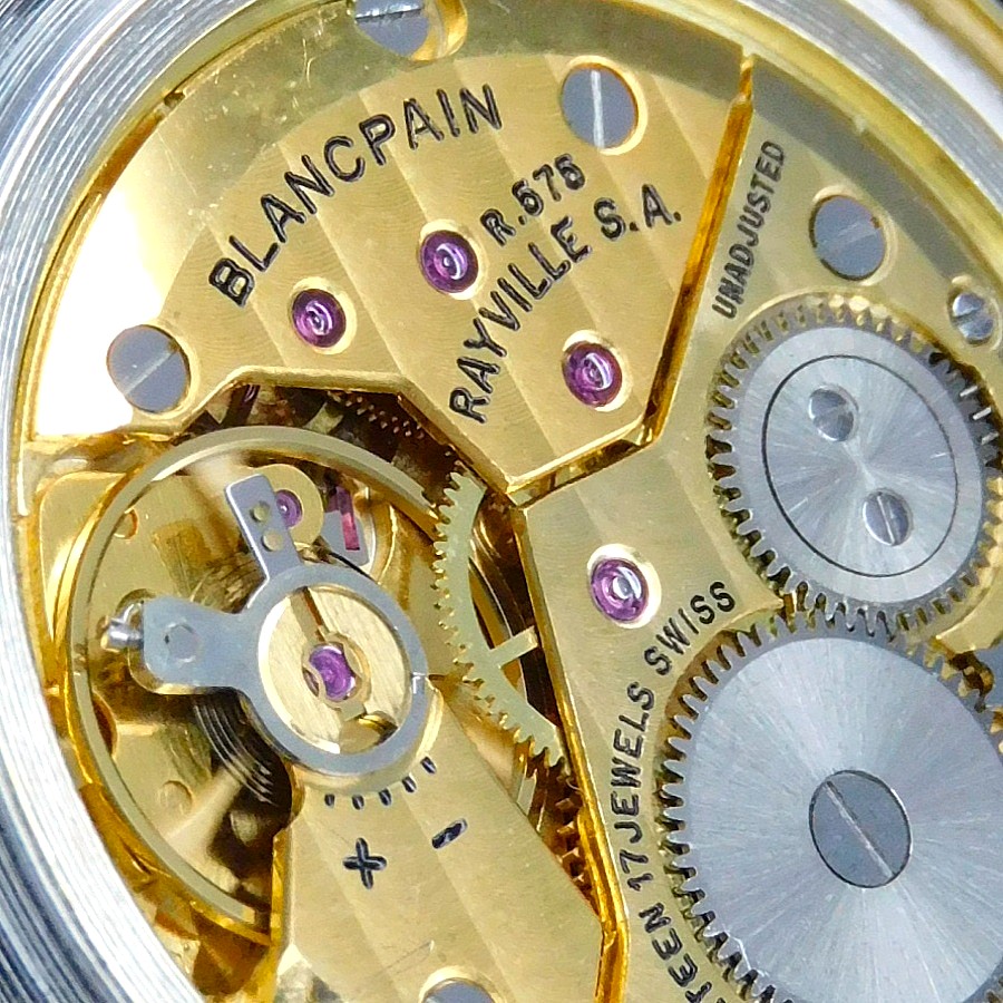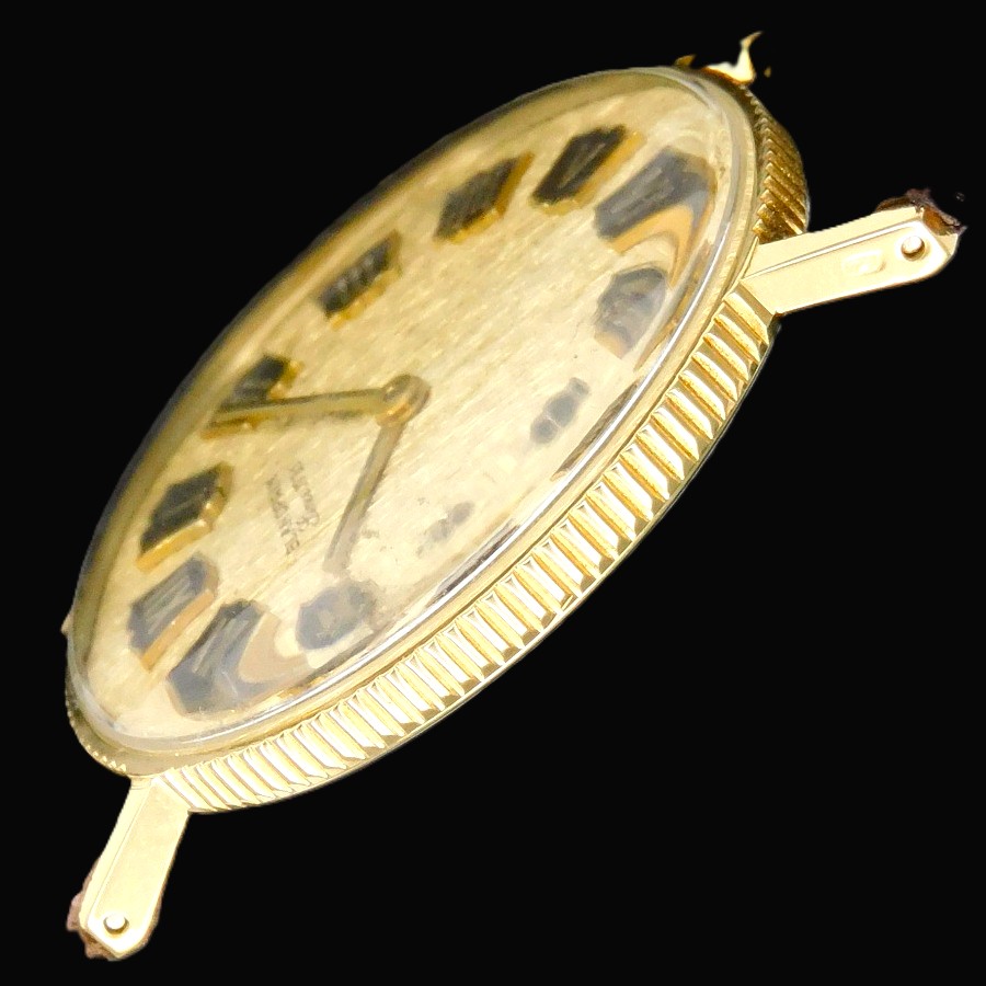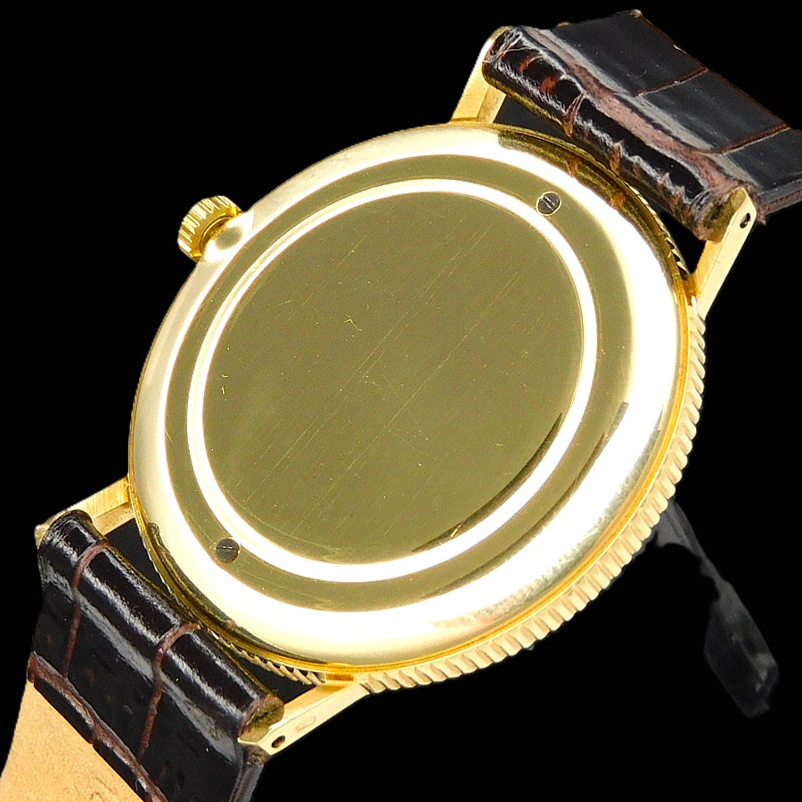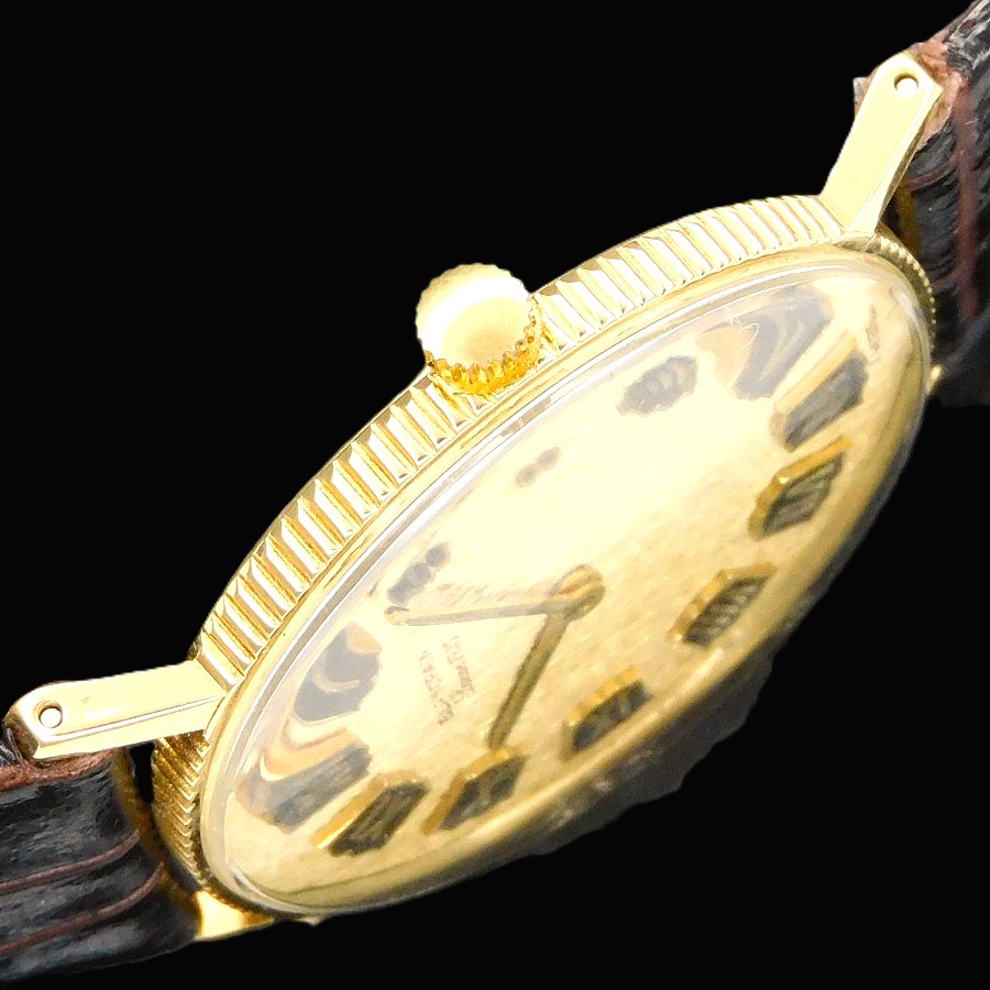 幻の逸品!18金無垢コインエッジケース立体的ローマンインデックス彫金文字盤★プランパン ゴールドスリム★伝説Cal.R575プゾー7001ベース