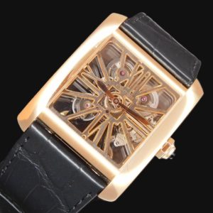 1904年11月12日、アルバート サントス・デュモンが機械式の飛行に初めて成功した。 『his flying machine had flown 75, 128, and 142 yards, decided to return to his starting point by going against the wind. For thirty yards the motor ran along the ground, then suddenly it rose to a height of about five yards, and appearing like a great white bird, it soared half-way down the course. M. Santos Dumont, startled by some spectators in his way, twisted his rudder quickly, and the machine came heavily to the ground, damaging one of its wings. The experiment, however was a triumph for actual flight was achieved; and it seems as though it were only a matter of time for the conquest of the air to be accomplished. The 235 yards were traversed in twenty-one seconds.”』 1904年11月12日、アルバート サントス・デュモンが機械式の飛行に初めて成功した。 この事実は上記の記事と共に写真が付けられ世界全土を駆け巡った。そしてこれをきっかけに彼の友達であった当時フランス貴族達愛用のジュエラーとして名を馳せていた”ルイ・カルティエ”が時計を考案することを誓った。そして1909年、後、ジャガールクルトとなるエドモンドジャガーをプロジェクトリーダーとして迎え、ここに名機となるサントス1904が誕生した。そしてその勢いは第一次世界大戦が始まると、戦争での必需品となるモデルを1917年ルノーFT17軽戦車にインスパイアされ、プロトタイプ1918年に作成、アメリカ陸軍であるジョン・J・パーシング将軍にプレゼントしていることで、アメリカ軍とのオフィシャル契約としての受注を考えていたことは言うまでもない。そして1919年にタンクノルマルを発表し、そのデザインは、当時から今日まで、そのデザインを変わらずにいることで、誰もがタンク造形=カルティエと一目で理解できるようになったことは、2015年、本格的にマニュファクチュールとしてカルティエが1847MCを開発し、この機械によりヴァシュロンなど、リシュモン内でもこの機械をエボーシシュとして重要な存在となっていった。そして1916年、手巻きの薄型キャリバーとして、9619MCが誕生していく。この機械は、薄型にも拘わらず、2つのゼンマイを擁することで、72時間というロングなパワーリザーブを誇り、緩急針部分には微調整の部品にCARTIERのCを形どったパーツを使用、ひげ持ちもシンプルで調整しやすく、緩急針は時計の歴史上で最大の信用をおけるキフ型を採用。28800振動を可能とする為によりサイズダウンした機械となり、それにより2,3,4番車のブリッジまでをも文字盤のデザインに変えてしまった。そんなMCたる自社キャリ9619MCを搭載した今回の逸品は900万以上の定価として見事にカルティエは成功を遂げた。軍用の歴史を繋ぐ本来のタンクそのもの意味をなす真実のタンクと言っても過言ではない。W5310040…最高のカルティエストーリーが28800振動の鼓動と共に聞こえてくるただろう。